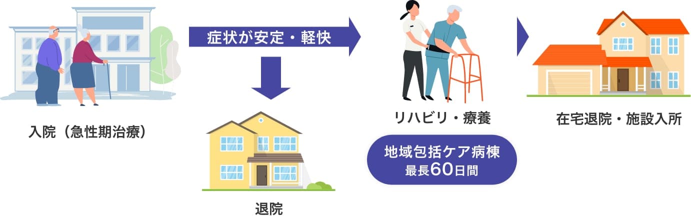 地域包括ケア病棟の入院日数は保険診療で決められており、最長60日までとなっています。